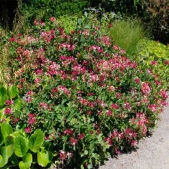 The blooms last from spring through late summer. The tubular shapes will sometimes flare into five lobes. Blossoms will deepen into richer colors of pink, white, and magenta. You’ll savor every passing breeze thanks to an amazingly fragrant smell. Meanwhile, you can watch your vine crawl up arbors, cascade down rock walls, and even provide beauty on a steep bank.