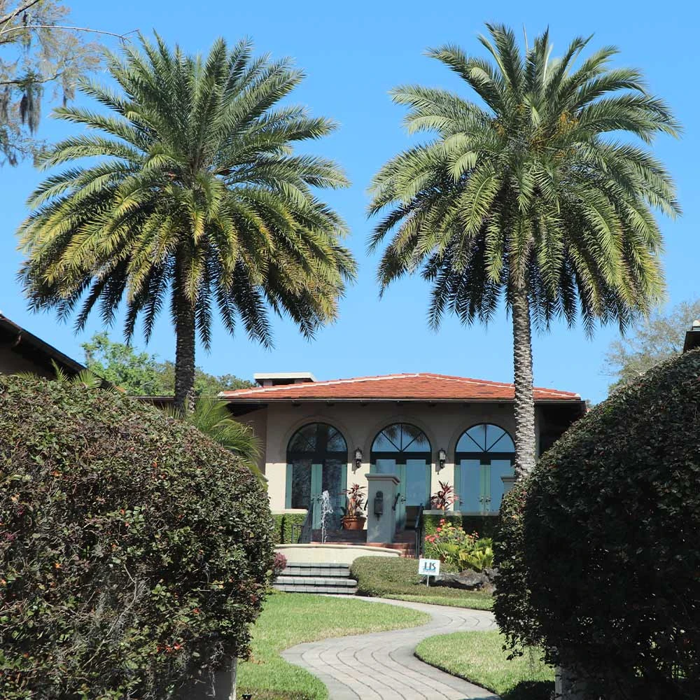 This Date Palm variety has the beautiful look that landscape designers are searching for. Their silvery blue-green leaves provide the dazzling color that causes people to stop and stare. They have a unique diamond pattern on their trunk that gives it a textured look similar to a pineapple.